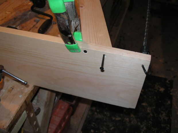 Así que mira las fotos. Primero añadir una diagonal y fijar. Puede que necesite utilizar creativamente las pinzas y cuerda de amortiguador auxiliar para comprimir las piernas en la diagonal y manténgalo ahí para marcar, perforar y atornillar.