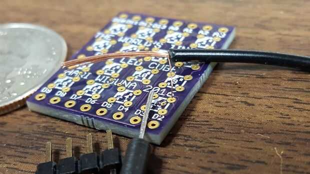 Debido a las dimensiones increíblemente pequeñas que tratamos con, soldar los cables para las conexiones punto a punto es demasiado complejo hacerlo a mano, así que diseñé un PCB para él. Sería genial ver más cubos pequeños en el mundo por lo que he compartido mi PCB personalizado.
