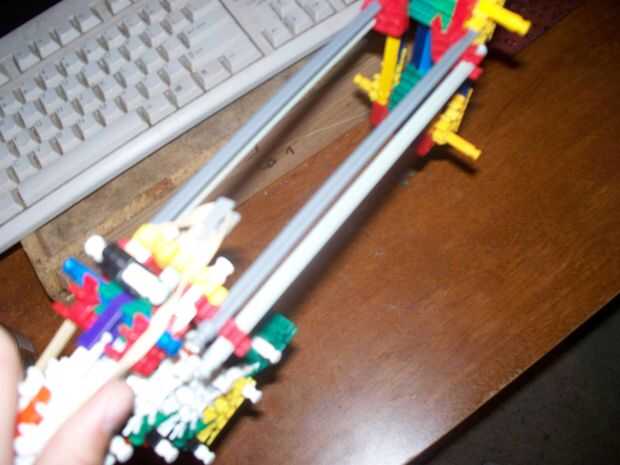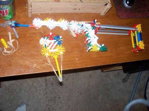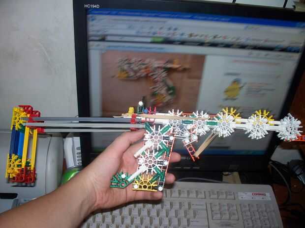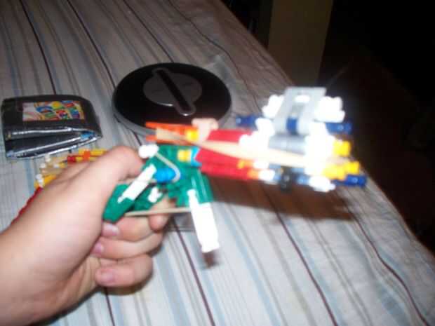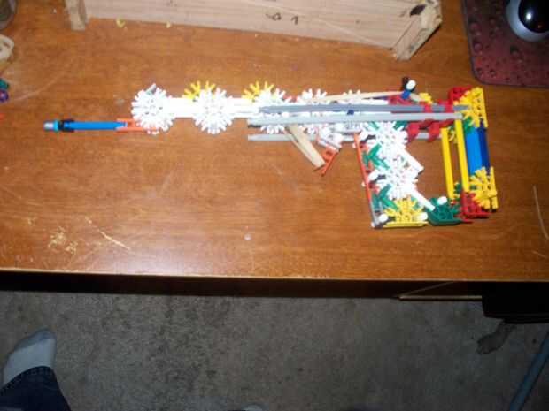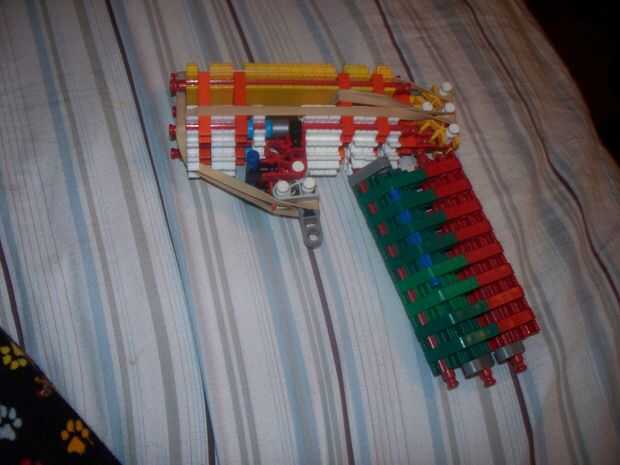 este es mi primer instructable. No es muy potente pero va a tirar unos 15 pies fotografiar barras verdes poco.Ah y perdón por las fotos mal.Paso 1: piezas a conectores:2 naranja13 verdebarras:2 verde (incluyendo 1 de munición)2 rojo4 azul1 amarilloot