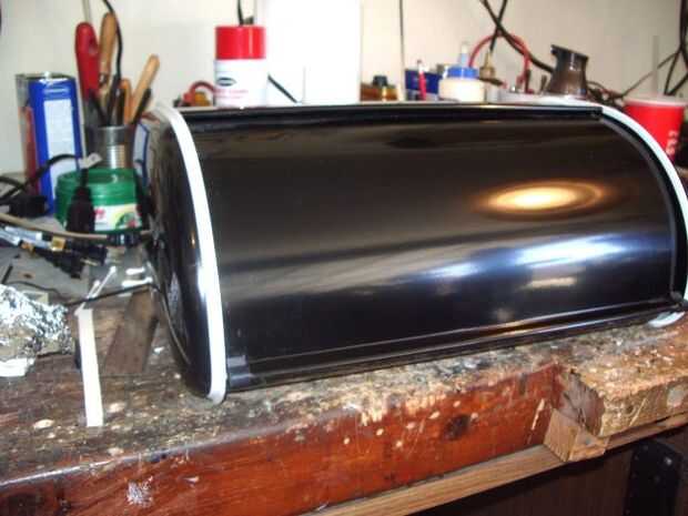 Además de la caja he usado una pequeña cantidad de chatarra madera contrachapada y madera, tornillos para madera, una regleta, arandela de uno goma, alrededor de 1,5 pies cuadrados de vinilo (restos de un anterior proyecto) y algún adhesivo en aerosol.