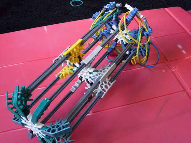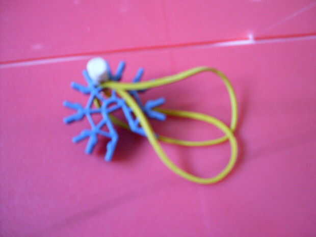 La primera imagen muestra cómo debe fijar dos bandas elásticas en el conector (perdón por la foto borrosa. El resto son mucho mejores). Forman ocho veces, y luego acumular en el cilindro que se muestra en la imagen segunda y tercera.