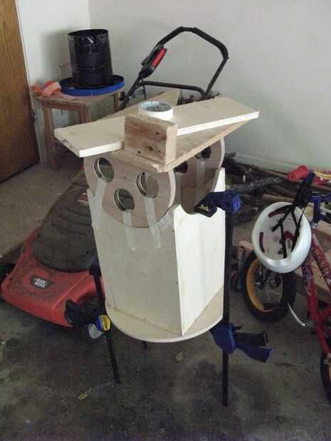 Consejos finales para la pintura: Asegúrese de que usted pone un poco de un revestimiento de madera especialmente en los bordes de la madera contrachapada, ya que es donde la humedad se absorbe más. También, pintar todo lo que está dentro del tubo, excepto los espejos (que deben eliminarse para la pintura), negro plano, uso como plano negro como sea posible para eliminar reflejos de luz. Me gusta usar pintura de pizarra, es agradable y plana. (Tiendo a preparar madera por "cebado" lo con una mezcla de Titebond II y el agua en primer lugar.) No sé lo que mi amigo terminó usando. También, no poner los espejos de nuevo hasta que la pintura ha dejado apagado-gasear.