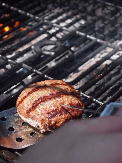 Coloque las hamburguesas en la parrilla precalentada y cierre la tapa de la parrilla. Después de aproximadamente 4-5 minutos las hamburguesas. Les suele gustarlos del tirón una vez que la parte superior empiece a cambiar a un color marrón claro. Cocine por otros 3-4 minutos. Verifique la temperatura de las hamburguesas insertando un termómetro de carne en la porción más gruesa de las hamburguesas. Las temperaturas en el último paso pueden utilizarse como una guía.
