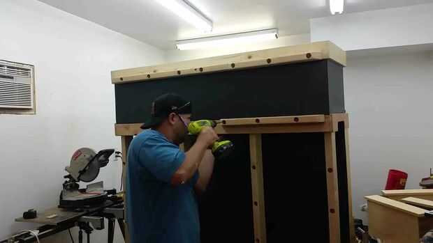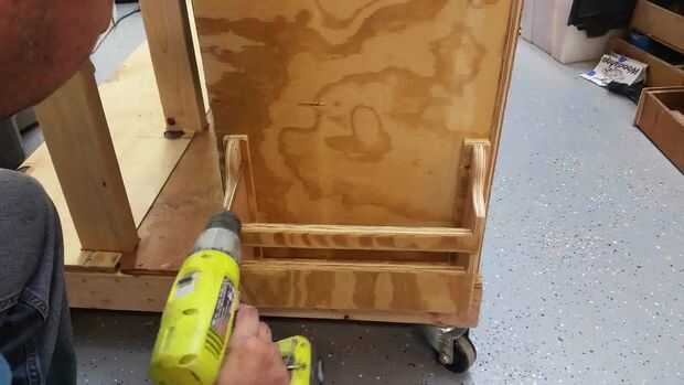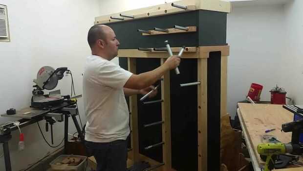 El proceso de hacer la rejilla de sujeción fue el mismo el lado madera estante. La única diferencia es que el ángulo de 5 grados es perpendicular, ya que la pieza de 2 × 4 se fija horizontalmente en lugar de verticalmente.