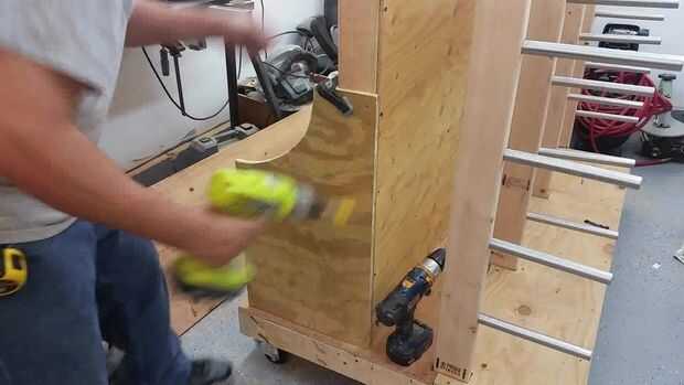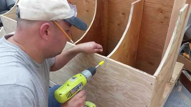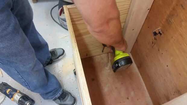 Utilicé tornillos 1 5/8 para unir los lados y parte frontal del gabinete. Asegura los paneles divisor central y la parte inferior de gabinete fue completa.
