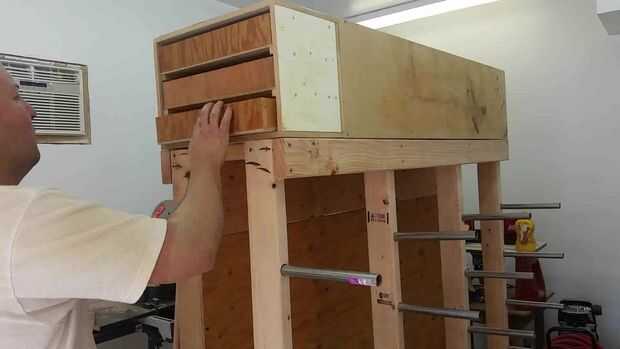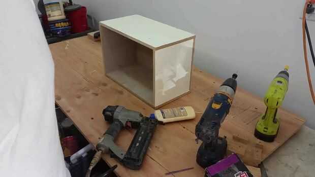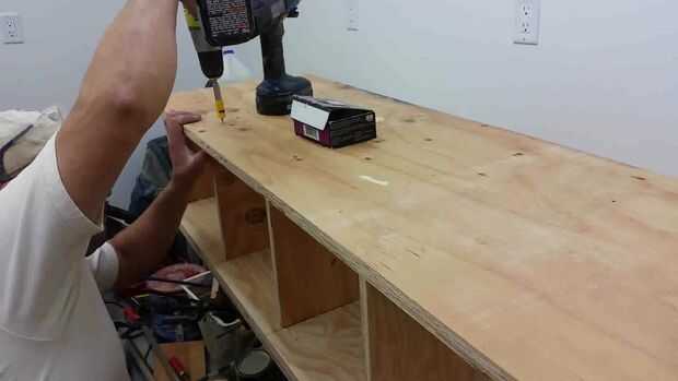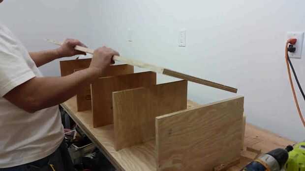 Utilizando cola y tornillos, había montado el gabinete con separadores espaciados uniformemente.
