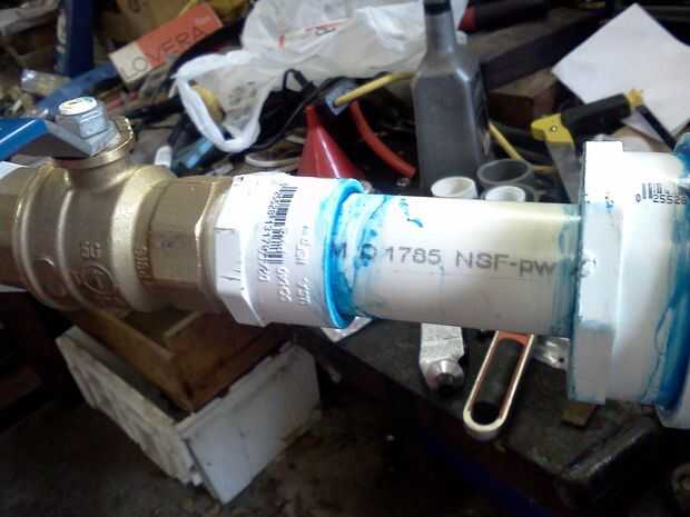 Una vez que ha secado el montaje de la válvula pegue el las 6 pulgadas de 1'' para que la válvula se abre hacia el 4 en tubo.