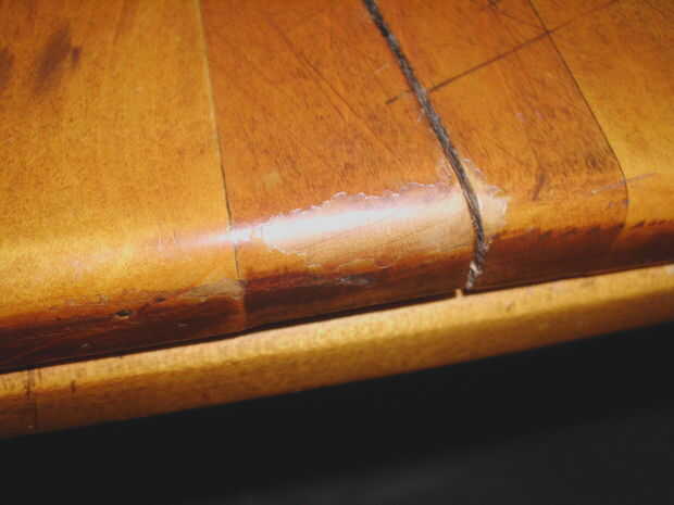 El acabado de las patas, soportes transversales, delantales y las hojas está bien y sería más bien no tocarlos para este proyecto. Requieren de un polvo y tal vez incluso de limpieza en algunos lugares, sino que se debe. También quiero dejar mucho de la historia en la mesa como pueda, así que me gustaría hacer poco o ningún lijado en la parte superior si es posible.