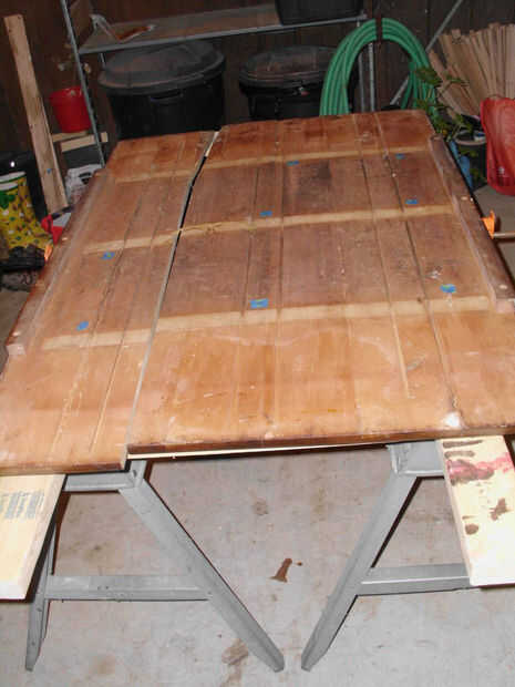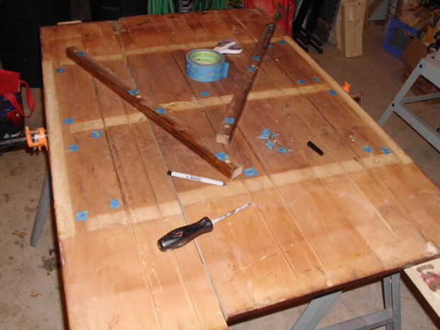 El primer paso en la solución fue desgarrando todo. Comencé por los bancos la mesa y quitar todos los tornillos que el tablero de la mesa para los delantales. Numeradas de cada agujero y el tornillo y me señaló su posición con cinta de pintor azul. Esto garantizaría que todo fue detrás juntos la misma configuración. Numerado los tornillos aunque sabía que sería reemplazar sólo para asegurarse de que colocar cada una con el tamaño correcto. Luego se me quitan las hojas de la mesa. Esto me dio tres componentes separados para trabajar el tablero de la mesa, las hojas y el conjunto de las patas.