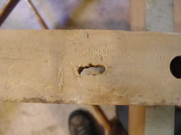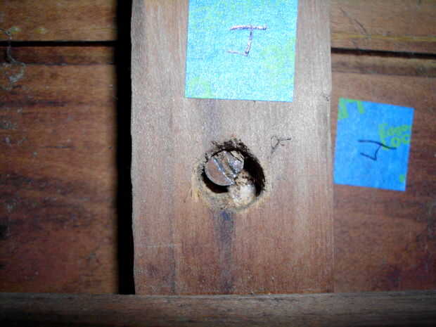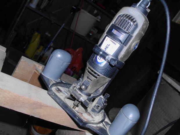 Una vez que se sujeta el tablero de la mesa y secado, tenía que abordar el problema de los soportes del tableros. La razón de la división superior fue porque la madera no se le permitió moverse con los cambios estacionales de humedad. Cada uno de los soportes tiene tres agujeros en él a través de su ancho para colocar el tablero de la mesa un agujero en cada extremo y uno en el centro. Los orificios se mantendrá como mantener todo centrado, pero decidí hacer los agujeros exteriores en las ranuras para permitir que la tabla que se encojan y se hinchan. Cuando la parte superior se contrae o se dilata, los tornillos de estas ranuras se deslizarán de lado a lado con la madera por lo que la presión de no desgarrar la madera otra vez. Usé mi herramienta dremel con el accesorio de la fresadora para hacer las ranuras.