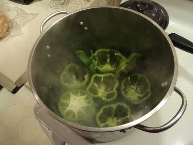 6. Escurrir los pimientos con cuidado, sean un poco frágiles. Asegúrese de guardar 2 tazas o lo del agua de pimienta. Esto se añadirá a la salsa de tomate. Usted va a ser diluir la salsa de todos modos, también podría tener con una "bofetada de pimienta"
