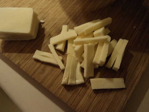 2. Cortar en palitos de 1/3" de espesor otra vez