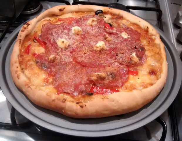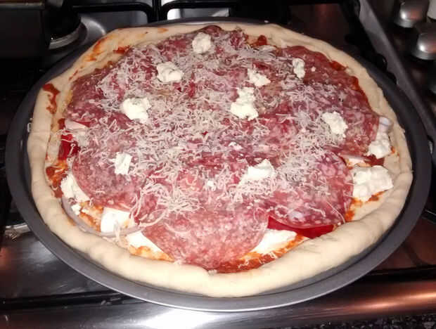 No voy a entrar en lo que podría tener como topping como todo el mundo tiene diferentes gustos. He atado algunas variantes a menudo disfruto (salami, pimientos etc...). Lo que debe tener después de esto es una bonita base sobre la cual construir las coberturas que le
