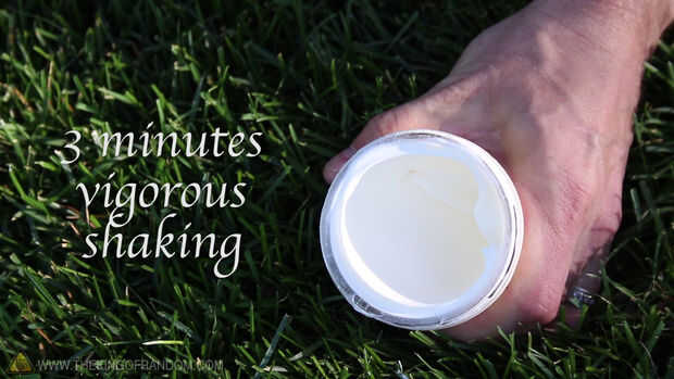 El método que funcionó bien para mí fue sacudir el frasco hacia arriba y hacia abajo durante 2-3 minutos tan duro y tan rápido como pude.