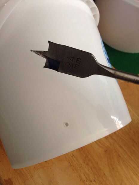 Usando un cuchillo afilado o en este caso un taladro con una broca de madera diámetro agujeros de unos 3-5 cm de la parte inferior para crear un depósito para la mezcla de nutrientes.