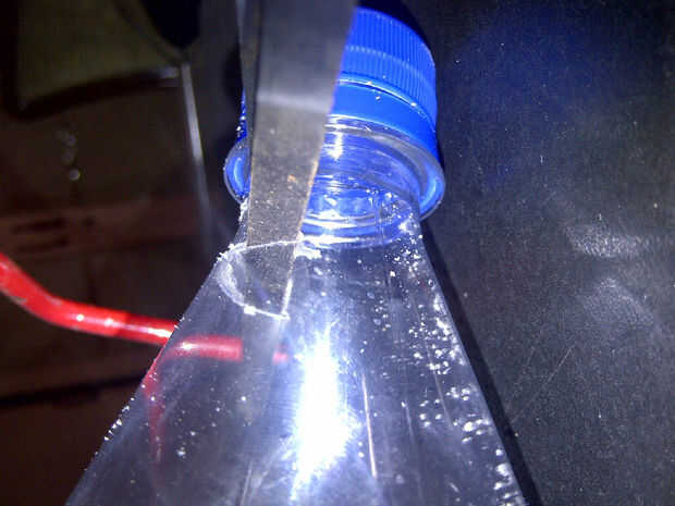 Hacer los cortes como se muestra en las imágenes y luego calor para que el plástico se derrite un poco.