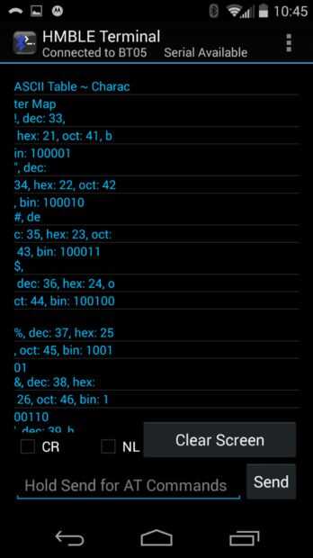 Tenga en cuenta que necesita golpear el botón de borrar la pantalla de la aplicación android para ver los nuevos datos de su dispositivo.