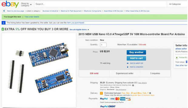 Paso 1: Comprar Arudino Nano en Ebay por $3
