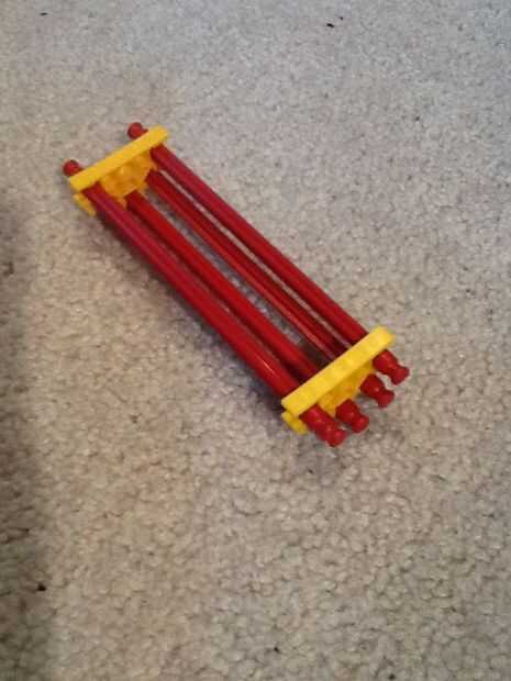 esto es un arma poderoso de K'nex que tira alambre munición con una banda elástica.Paso 1: materiales Necesita K'nex piezas, cinta adhesiva, una banda de goma, una pieza plana de plástico y un pin de ropa o clip.Paso 2: marco Construir ambas estas pi