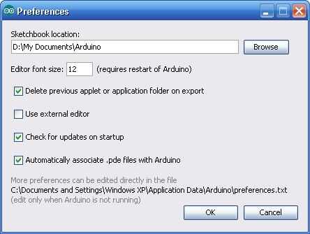2. identificar la carpeta sketchbook de Arduino, pulse Archivo > Preferencias menú figura siguiente muestra mi ubicación sketchbook en D:\ Mi Documents\Arduino