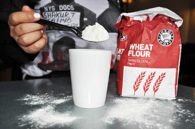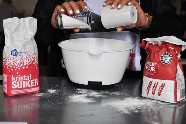 Se reúnen de ingrediënten af en zet deze klaar voor básica. Piscina hiervoor een koffiekopje. Meng een kopje bloem en een medio kopje suiker en olla een grote kom. Het media kopje bloem ga je gebruiken más adelante.