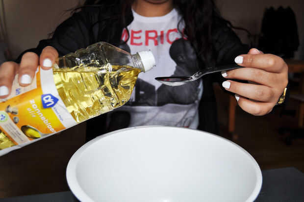 Paso 7: Añadir aceite de girasol y agua voeg zonnebloemolie en agua del dedo del pie
