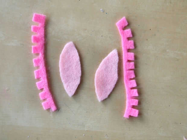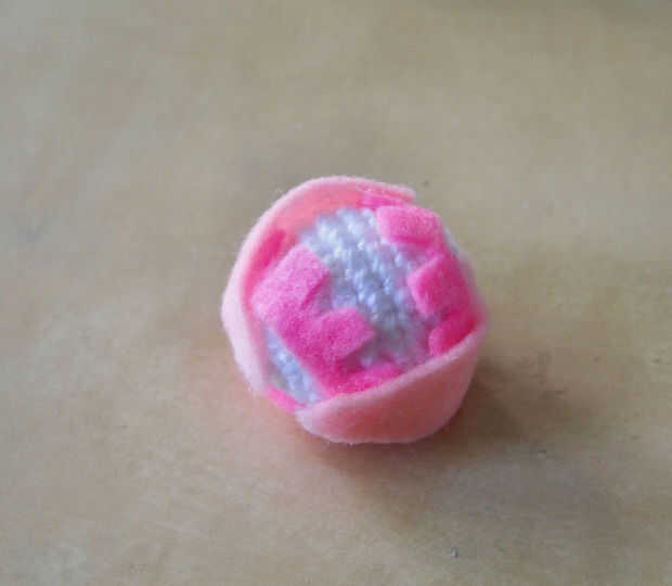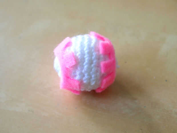 Cortar piezas de fieltro rosa rosa y luz como en la imagen 3 y pegarlos en la bola blanca. Si desea incorporar un LED como yo lo hice con glifo, usted puede encontrar las instrucciones aquí.