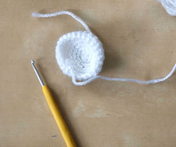 Rnd3: 2sc, sc, sc, 2sc, sc, 2sc, sc, 2sc, sc, 2sc, sc-16st(s)