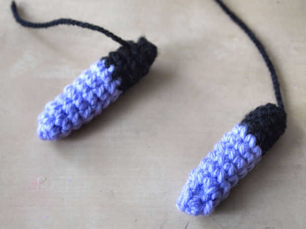 A partir de hilo negro, hacer 2 (reloj para el color de hilo cambiar en Rnd6).