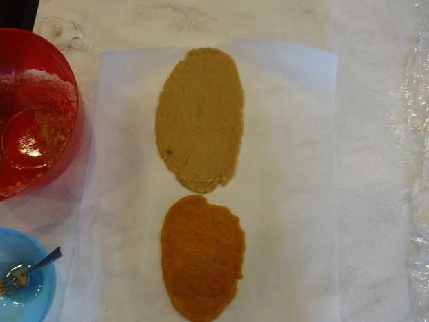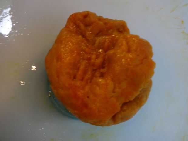 Después de cocinar con microondas para ablandarla, puede mezcla colorante amarillo en 1/3 de la masa y estirar la masa.