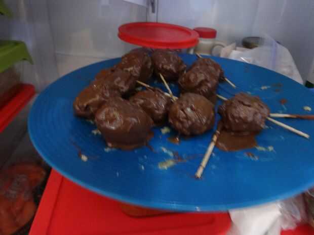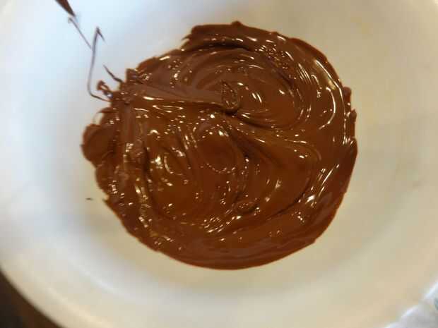 Mientras los huevos en el refrigerador, derretir chocolate en el microondas. Después de 20 minutos echar los huevos el chocolate y pegarlas en el refrigerador.