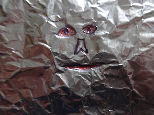 En primer lugar tomar un trozo de papel de estaño y cortar un cuadrado en 3 a 4. Si usted quiere dibujar una cara en él. Corta un 10 en el trozo de cuerda para más adelante. Envuelva el huevo en papel y luego atar un lazo en la parte superior para orejas de conejo.