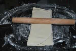 Doble en 4 como se muestra en la siguiente imagen. Refrigérala durante otros 20 minutos y luego repita. (hasta tiene un total de 3 veces)