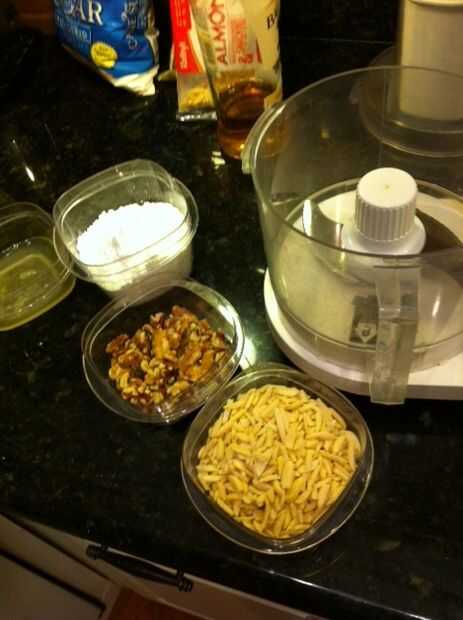 • 200 gramos blanqueado trituradas almendras.  Ya trituradas estaba solamente disponible en tienda