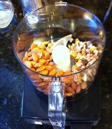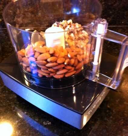 • Primero moler los 150 gramos de almendras y 50 gramos de nueces.  Ver el Movie_a