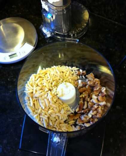 • Primero moler los 150 gramos de almendras y 50 gramos de nueces.