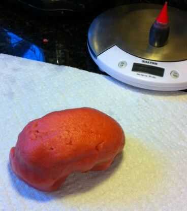 Tomar y guardar esta masa roja en un cuarto de galón bolsa Zip para evitar endurecimiento prematuro y secado.