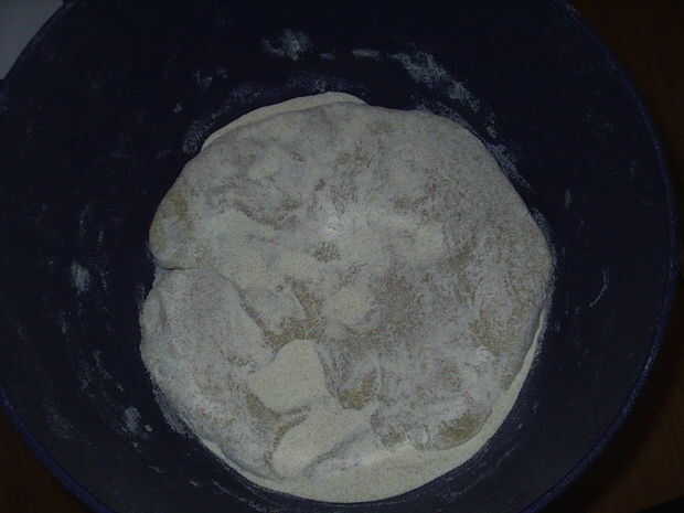 Dejar la masa a la altura de al menos 45 min (nota, si usted tiene prisa, puede acelerar el levantamiento mediante el uso de un horno a 100-150 grados centígrados, en cuyo caso bastaría con 30 min.)