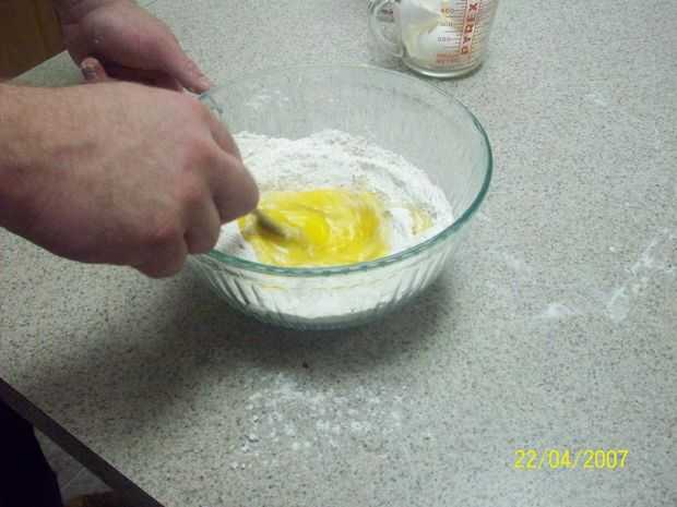 Dependiendo del tiempo, la harina, el tamaño de los huevos y si usted mantiene la boca bien, puede que necesite añadir un poco pequeña de agua para formar totalmente la masa.