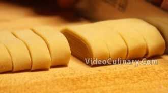 Enrolle la masa sobre una superficie enharinada 0.5 - 1 mm de espesor por mano, o utilizando una máquina de pasta.