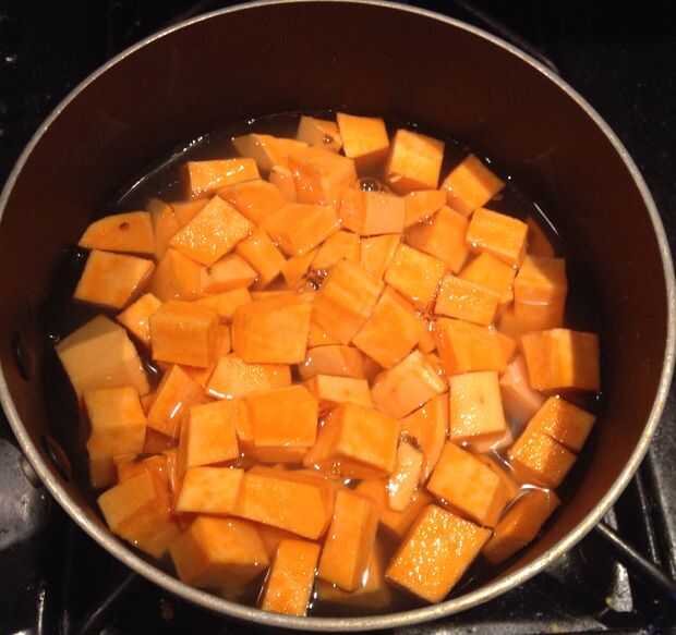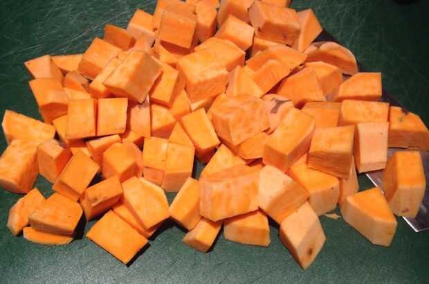 Patatas dulces son una verdura de invierno copioso; Cuando al horno, asado o en guisos, su carne es rica y densa. En esta sopa crema de batata, un poco va un largo camino. Patatas dulces, con un poco de crema y sal, soporte en sopa de su propio en un