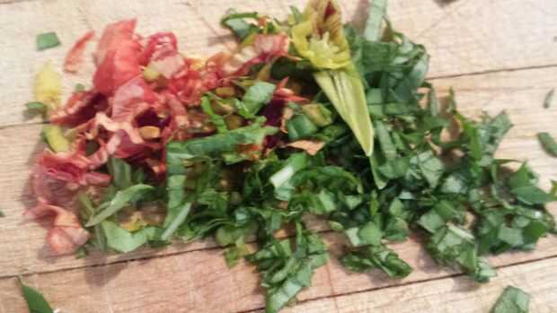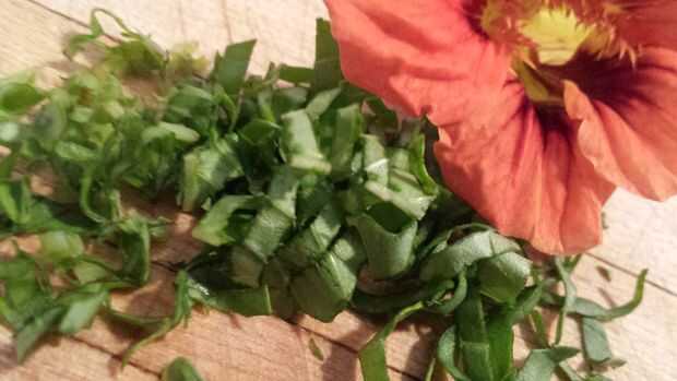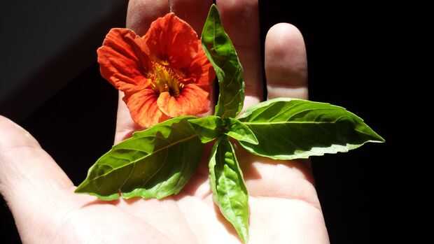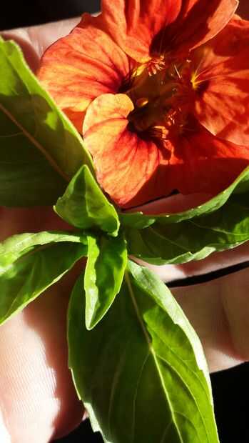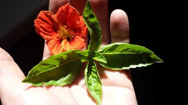 Albahaca fresca, orégano, ajo, flores de capuchina