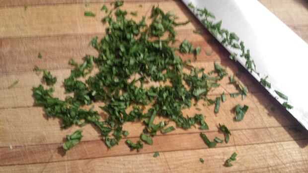 Mientras que la masa es ser amasada en la panificadora, es un buen momento para recoger hierbas, picar, preparar y añadir a la masa.