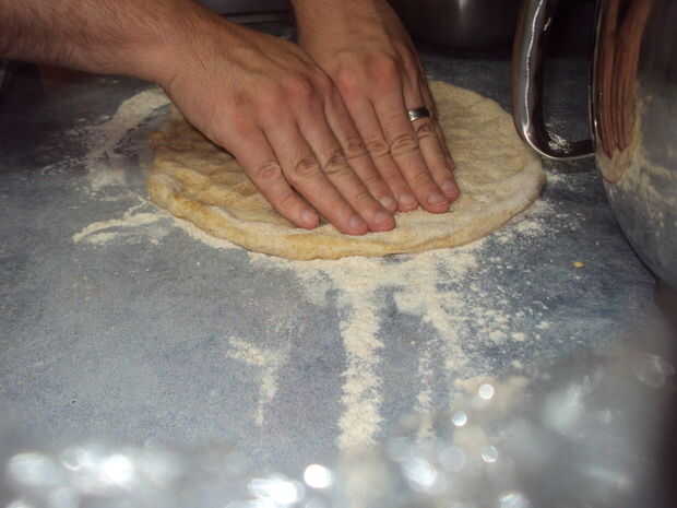 Además, preparar su pan de pizza con un poco de aceite del cepillo y luego polvo ligeramente con harina.
