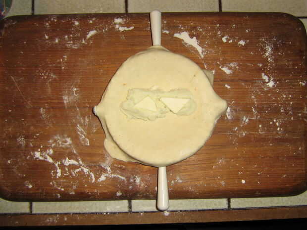 El relleno que estoy usando es un puré de patata, mezcla crema, ciboulette y manteca agria.