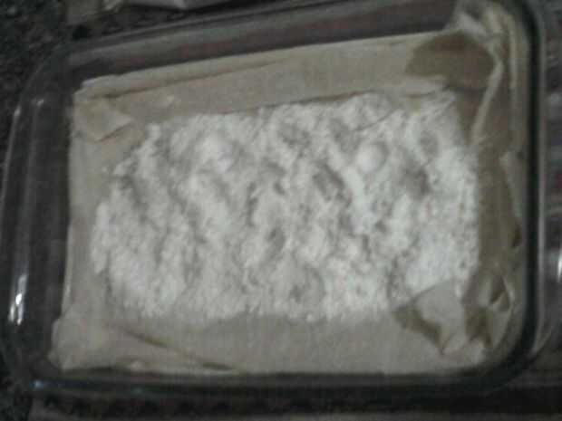 ahora después llenamos la bandeja de horno con la mitad de la masa filo, ponemos el azúcar y el polvo de coco