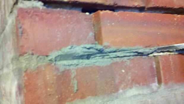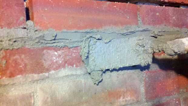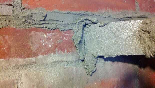 4. Empuje el mortero en la parte posterior del agujero, estrechándose en la punta por lo que es más delgada en la parte trasera donde voy a agregar más.