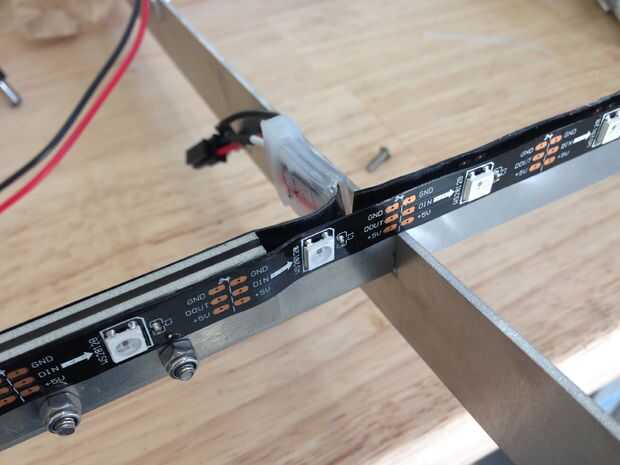 La mega Aurduino unidades tiras de 4 x 5M de Neopixels. Cada tira de 5M tiene su propia fuente de alimentación. Para cableado y código consultar el instructivo anterior.