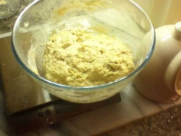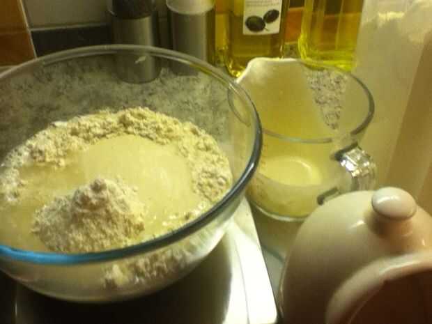 Etapa de la esponja: Añadir 4floz de mezcla de agua a una pasta floja 1tbs de add10oz sal mezcla de harina de pan para formar una masa suelta cubierta con paño húmedo cuatro 12 hrs