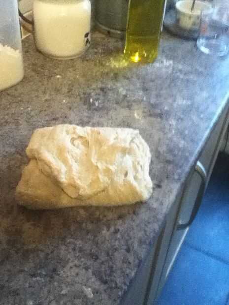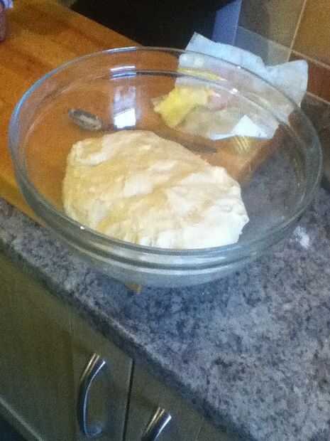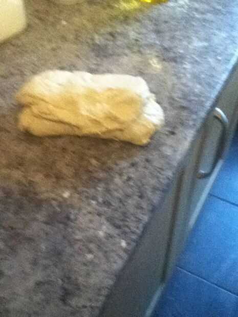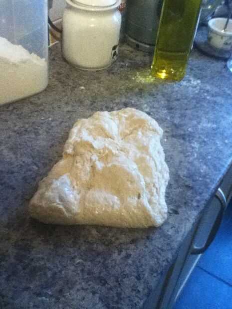 Kneading !! La diversión parte .i uso un tramo y doble método. Superficie de trabajo harina resultan de su estiramiento de masa la masa con las manos hasta cerca de 50cm de largo entonces veces más su auto 3 veces vuelta tramo y doblar hacer esto durante 10-15 minutos la masa debe han firme para arriba cuando usted presiona el dedo en la masa debe moverse hacia